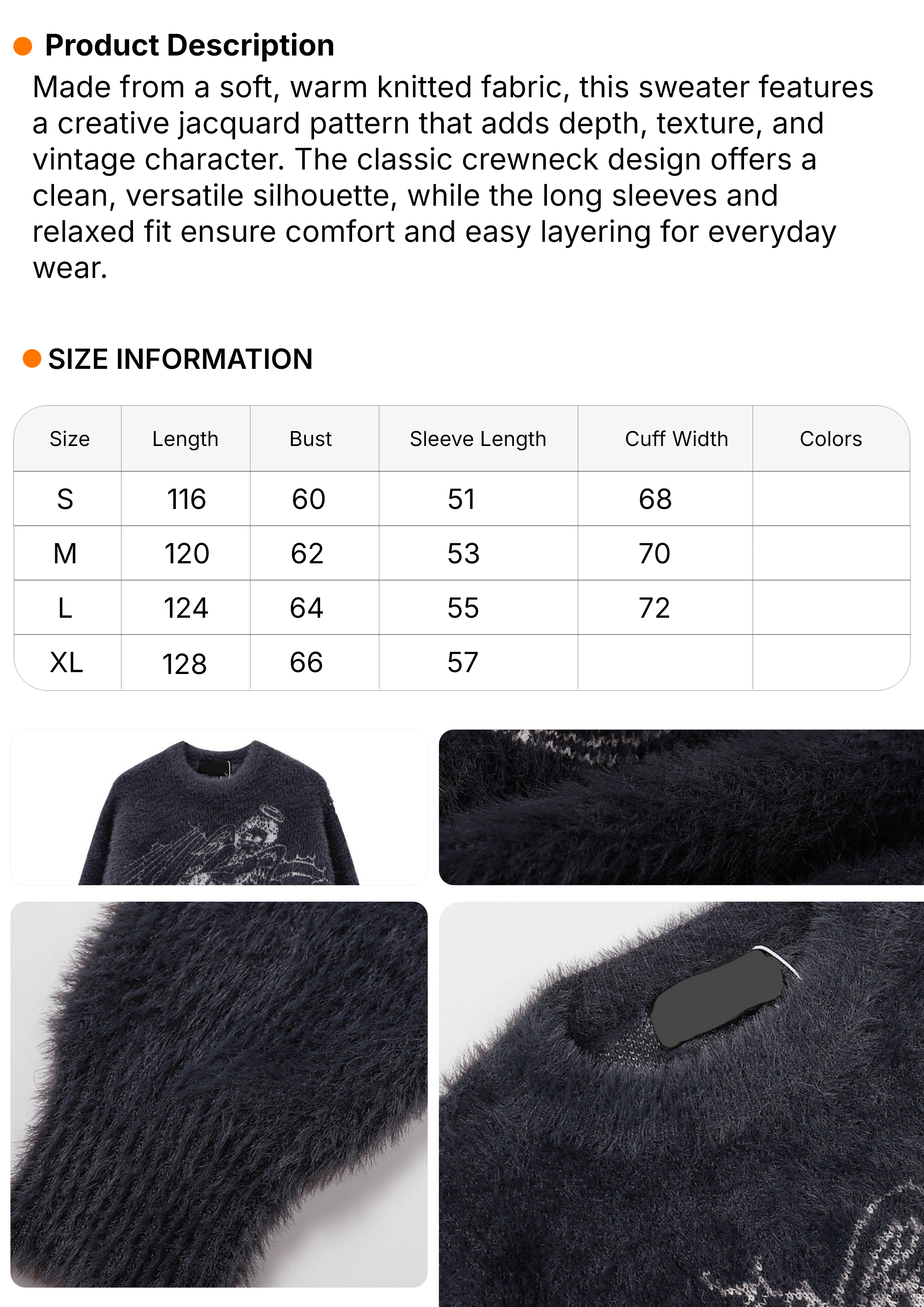 Express your streetwear identity with the Vintage American Creative Jacquard Knit Sweater, a perfect blend of retro American style and modern hip-hop fashion. Designed for both men and women, this sweater delivers a bold yet cozy look ideal for autumn and winter.