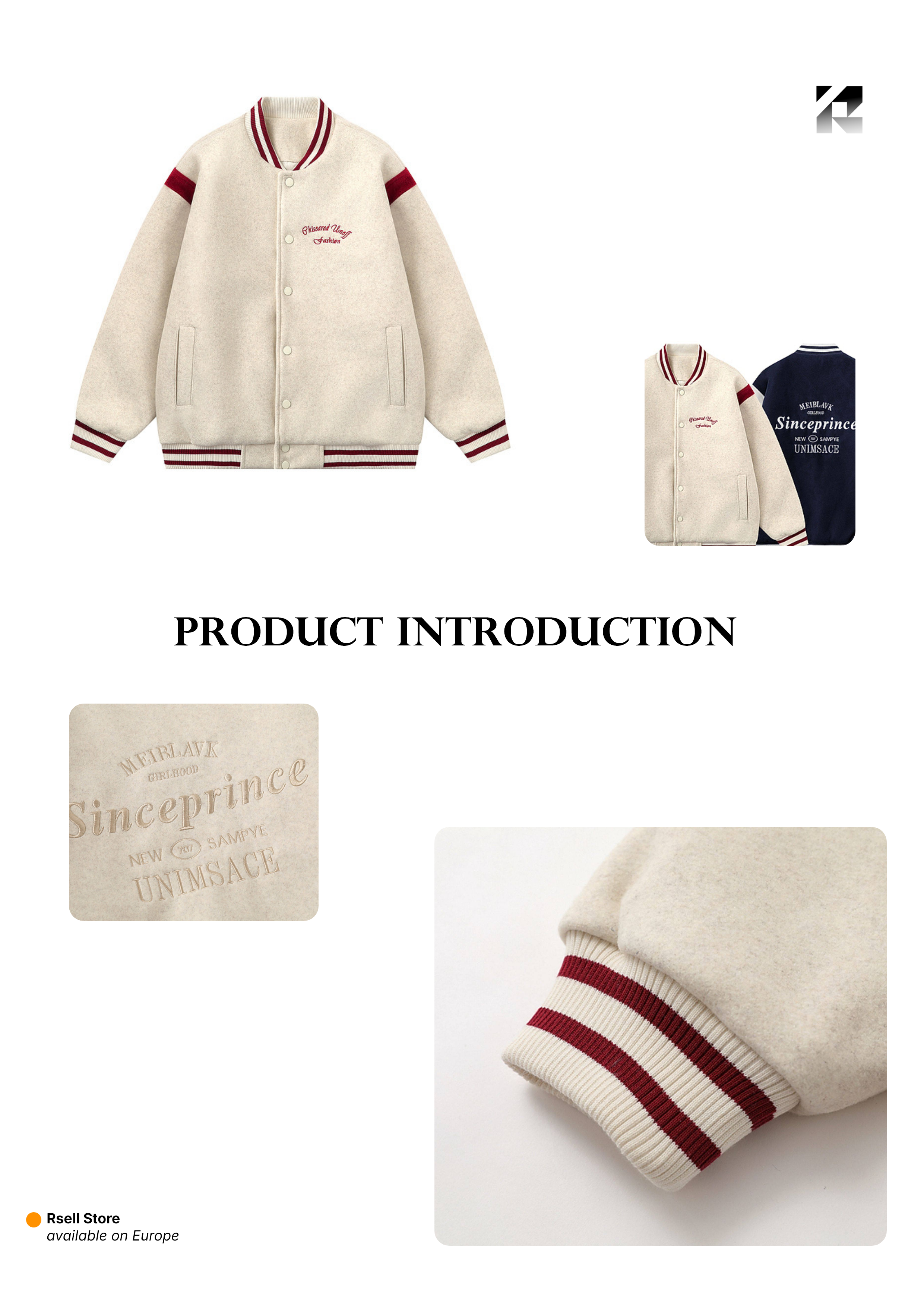 Featuring embroidered lettering and a contrast color design, this jacket delivers a strong varsity/baseball aesthetic while maintaining a clean, modern look. The cotton-padded interior offers reliable warmth, with an extra-thickened option available for colder conditions. A full zip-up front and structured yet relaxed fit make it ideal for everyday streetwear and layering.